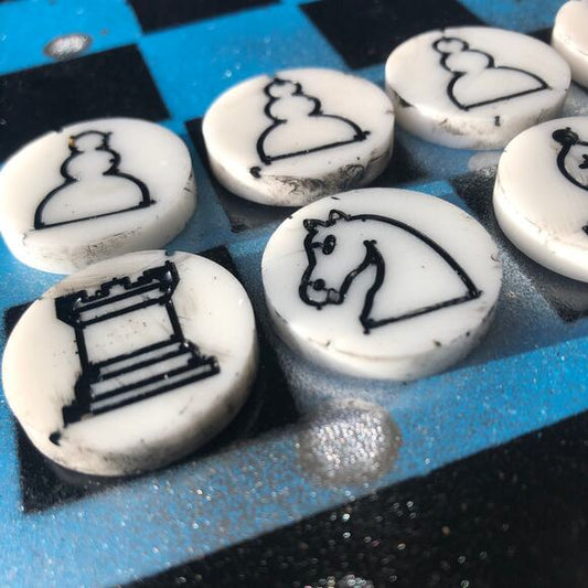 Scrapbook Chess Set - Blue & White Flowered Pattern
