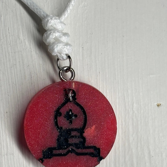 Red Crystal Bishop - Handmade Resin Chess Necklace