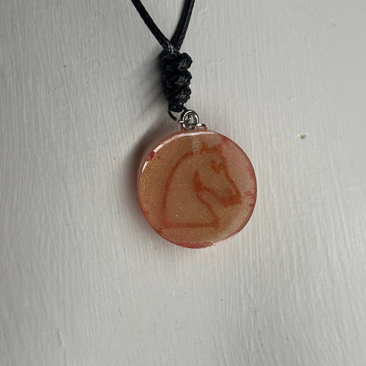 Orange/Green Knight - Handmade Resin Chess Necklace