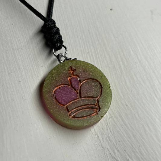 Fluid Pink Bishop - Handmade Resin Chess Necklace