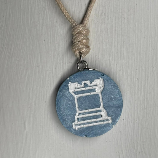Cream Blue Rook - Handmade Resin Chess Necklace