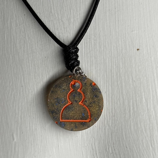 Green & Orange Luxury Pawn - Handmade Resin Chess Necklace