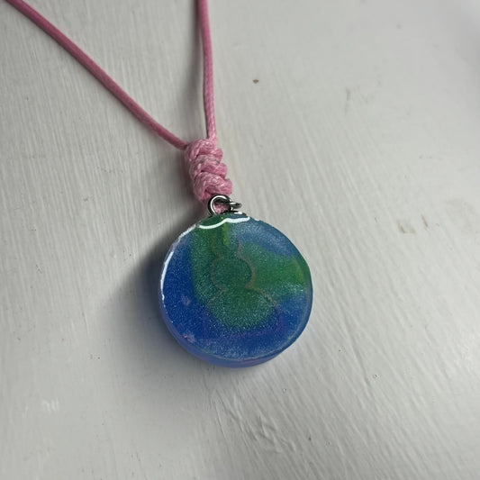 Blue & Pink Pawn - Handmade Resin Chess Necklace