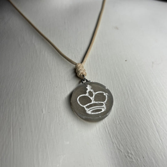 Cream Clear King - Handmade Resin Chess Necklace