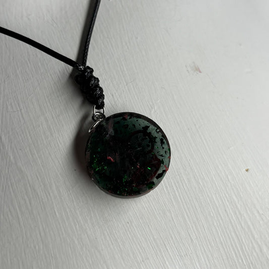 Dark Green Queen - Handmade Resin Chess Necklace