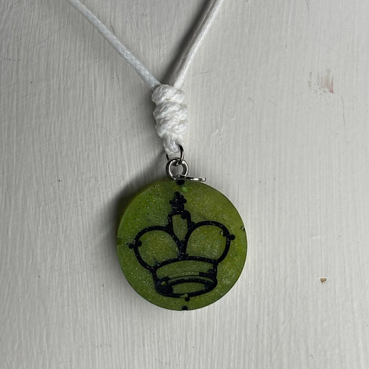 Green Dark Lime Queen - Handmade Resin Chess Necklace