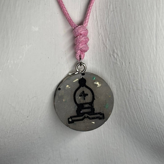 Silver Pink Bishop - Handmade Resin Chess Necklace