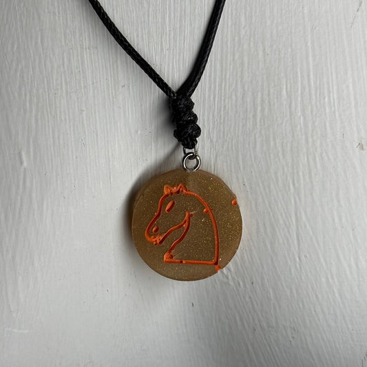 Vintage Rust Orange Knight - Handmade Resin Chess Necklace