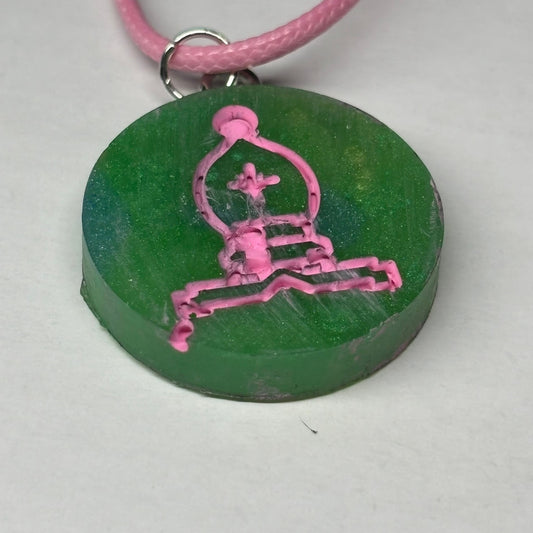 Pink & Green Bishop - Handmade Resin Chess Necklace