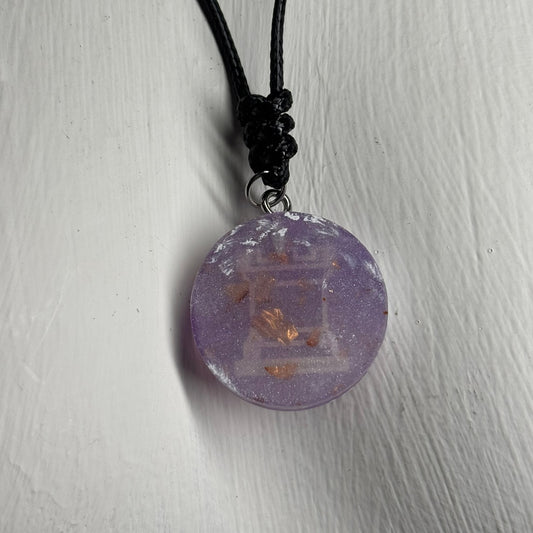 Purple Crystal Rook - Handmade Resin Chess Necklace - Flat Edition