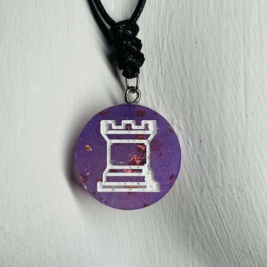 Purple Rook - Handmade Resin Chess Necklace - Flat Edition