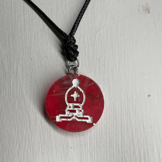 Red Translucent Bishop - Handmade Resin Chess Necklace