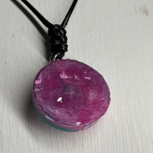 Pink Green Mesh - Handmade Resin Chess Necklace