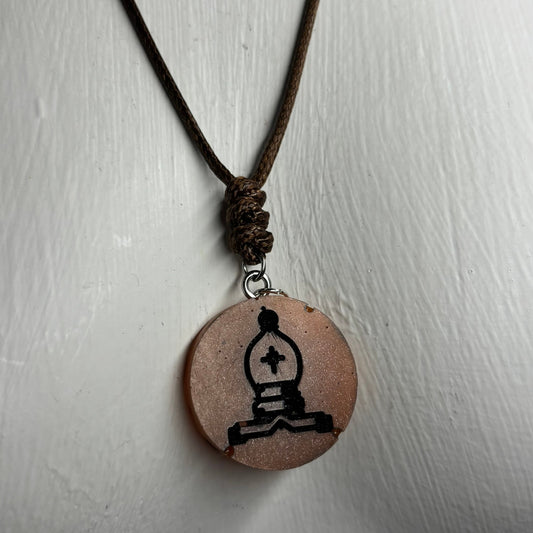 Dark Orange Bishop - Handmade Resin Chess Necklace