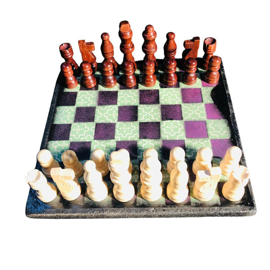 Large Chess Set - Purple & Green