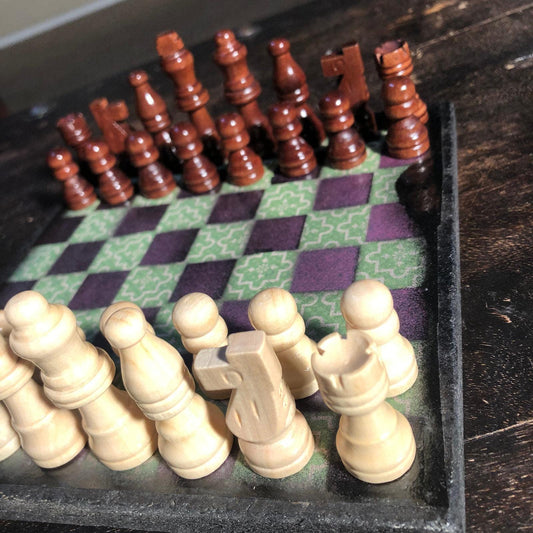 Scrapbook Chess Set - Green & Purple