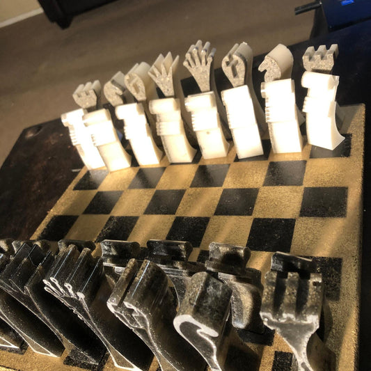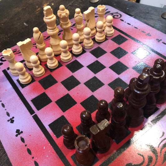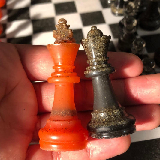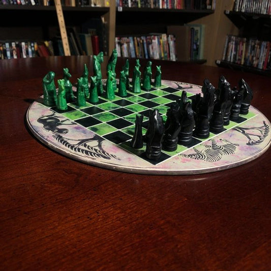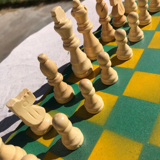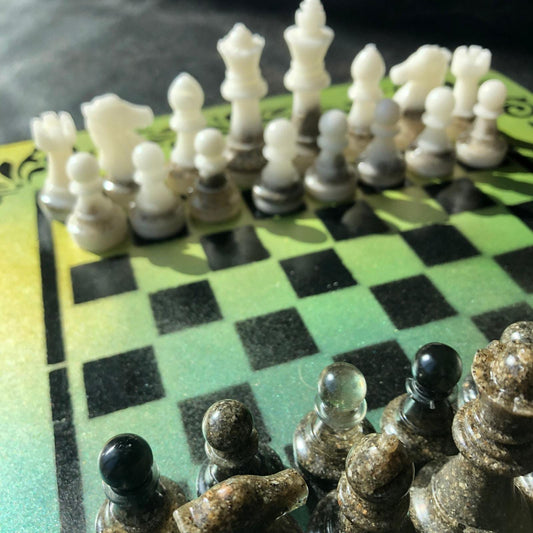 Check out our unique Medium sized hand made chess sets. Theses chess boards and chess pieces are all single stock and one of ones. These sets range from 10x10 to 12x12. Not too big nor too small. A great set for the casual player.