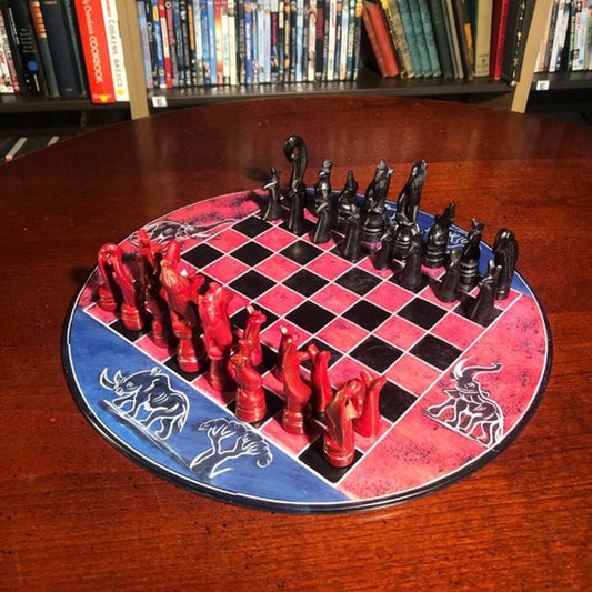 African Vintage Chess Set - Elephant Kenyan Chess Board