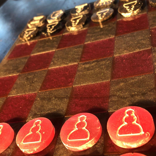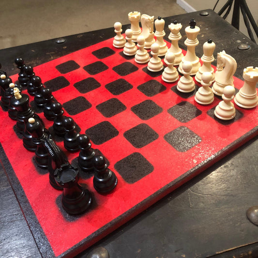 Check out our unique Medium sized hand made chess sets. Theses chess boards and chess pieces are all single stock and one of ones. These sets range from 10x10 to 12x12. Not too big nor too small. A great set for the casual player.