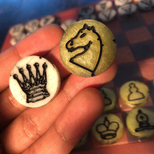 Scrapbook Chess Set - Blue Crystal Gold (Resin Pieces)