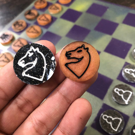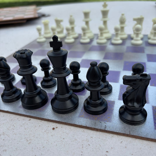 Check out our unique Medium sized hand made chess sets. Theses chess boards and chess pieces are all single stock and one of ones. These sets range from 10x10 to 12x12. Not too big nor too small. A great set for the casual player.