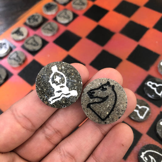 Check out our unique Medium sized hand made chess sets. Theses chess boards and chess pieces are all single stock and one of ones. These sets range from 10x10 to 12x12. Not too big nor too small. A great set for the casual player.