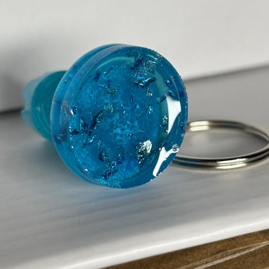Blue Bottoms Knight Handmade Resin Keychain - One of a Kind Design