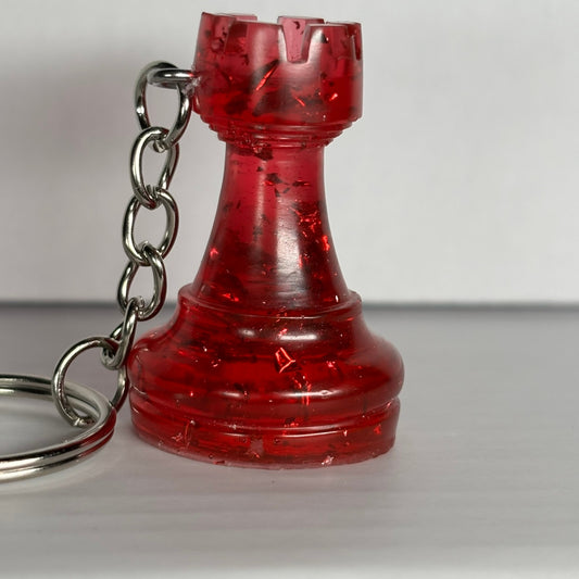 Fire Red Rook Handmade Resin Keychain - One of a Kind Design