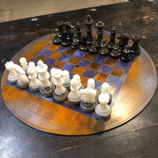 Vinyl Chess Set - Rustic Orange Blue (Resin Pieces)