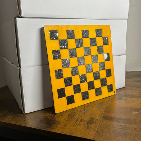 Yellow Black Chrome - Painted Thin Wooden Chess Board