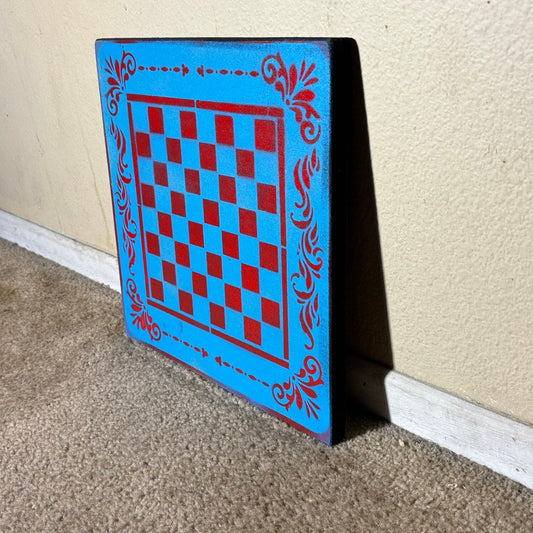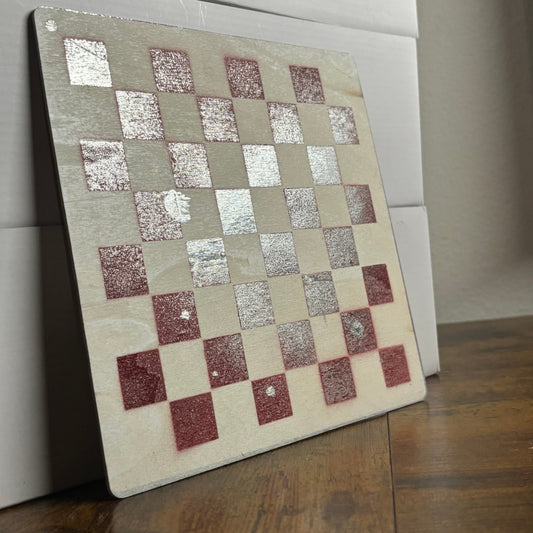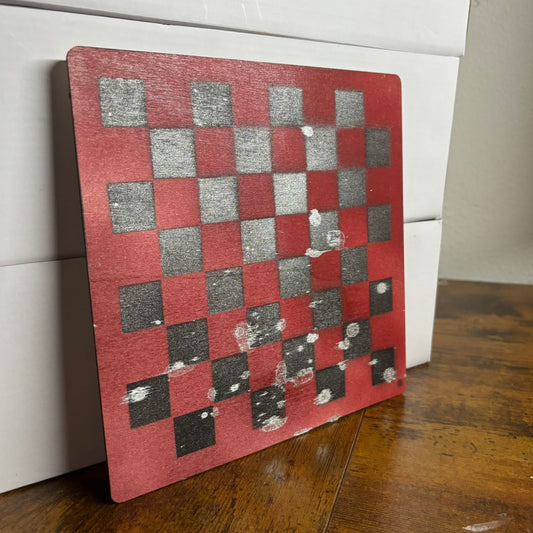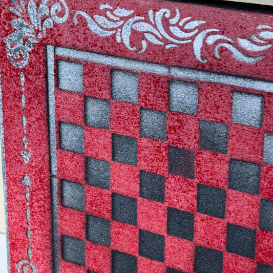 Red Chrome Silver - Painted Thin Wooden Chess Board