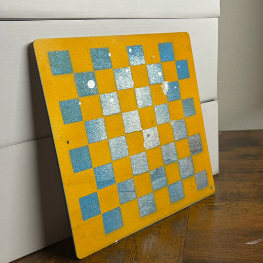 Yellow & Blue - Painted Thin Wooden Chess Board