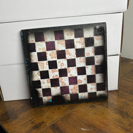 Pinked Golden Drip - Painted Thin Wooden Chess Board