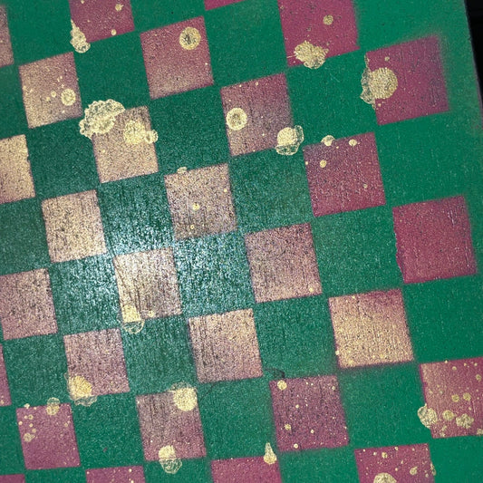Pink Green Gold Splatter - Painted Chess Board