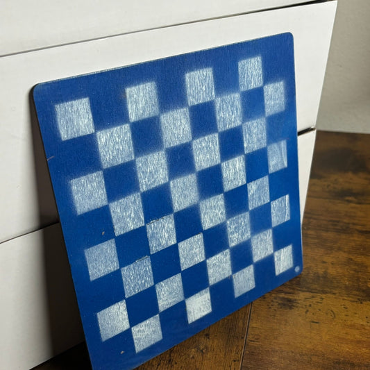 Blue & White - Painted Thin Wooden Chess Board