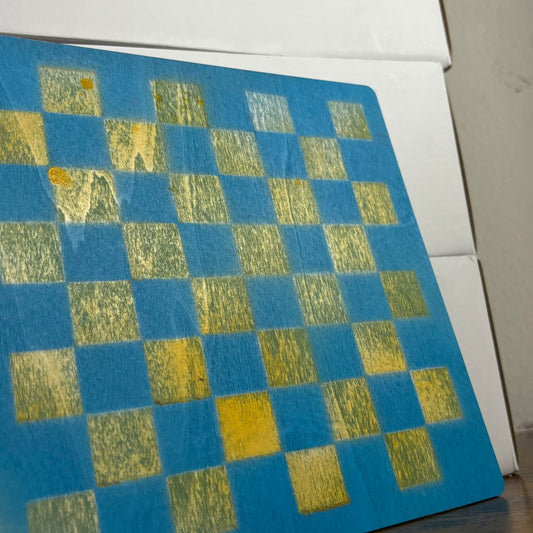 Blue Mustard Yellow - Painted Thin Wooden Chess Board