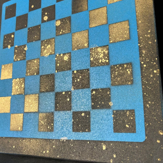 Blue & Black Gold Mist - Painted Chess Board