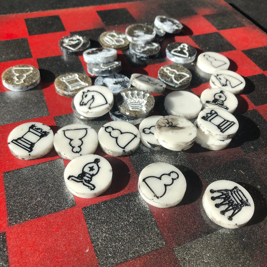 Check out our unique hand made chess sets, painted in variety of colors. Theses chess boards and chess pieces are all single stock and one of ones. All of these chess boards have been hand painted.