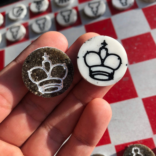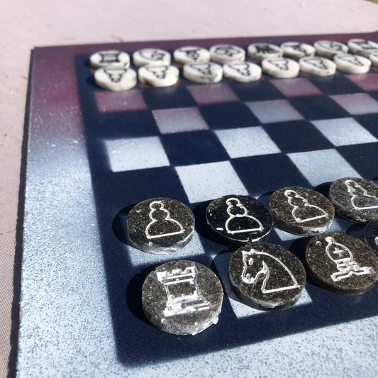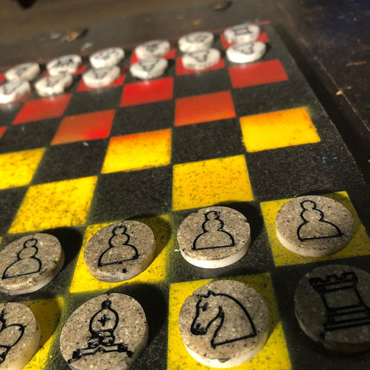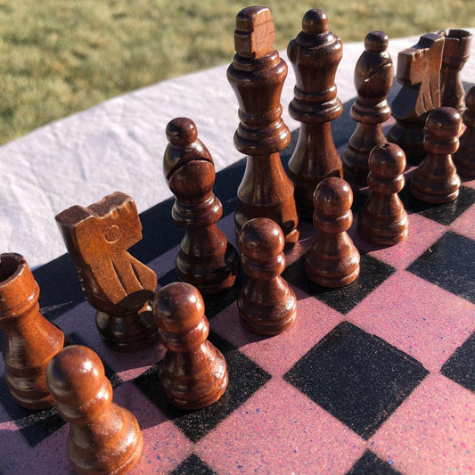 Check out our unique hand made chess sets, painted in variety of colors. Theses chess boards and chess pieces are all single stock and one of ones. All of these chess boards have been hand painted.