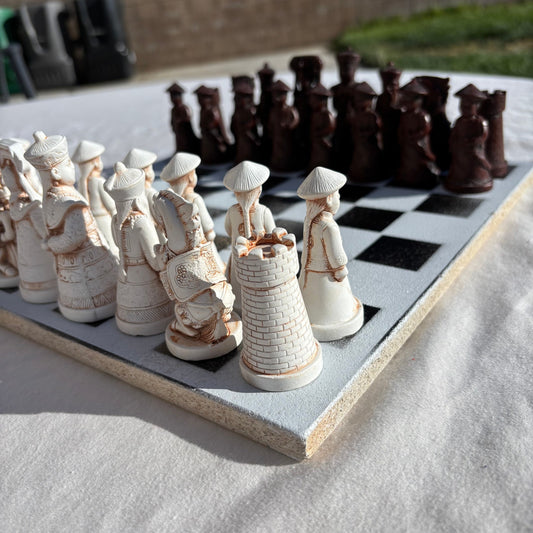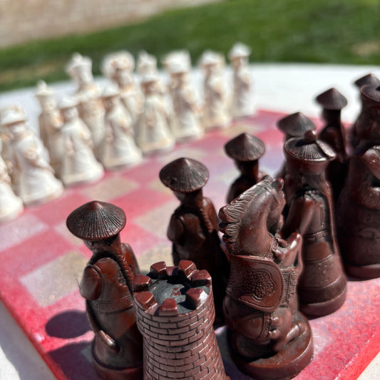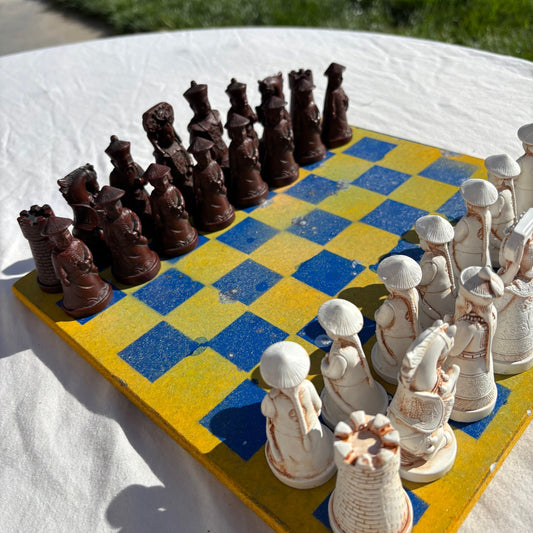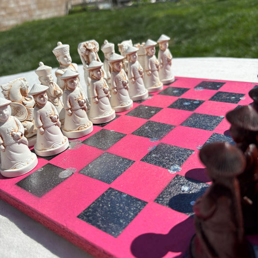 Check out our unique hand made chess sets, painted in variety of colors. Theses chess boards and chess pieces are all single stock and one of ones. All of these chess boards have been hand painted.