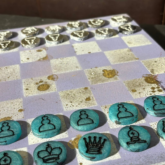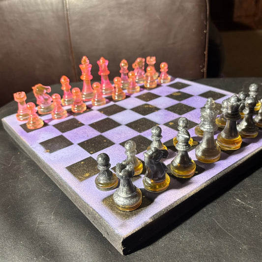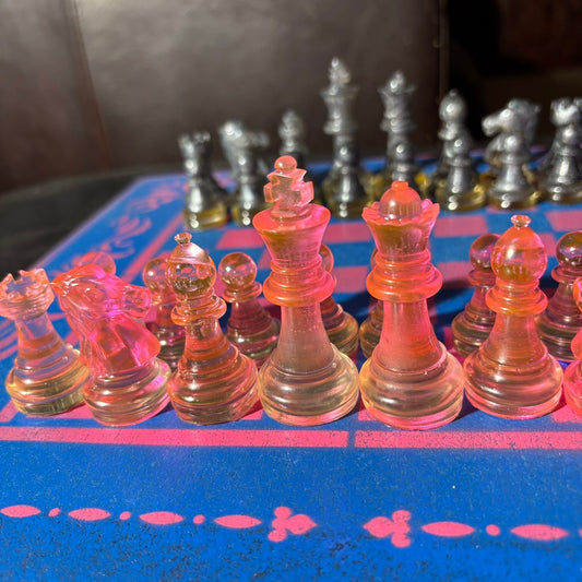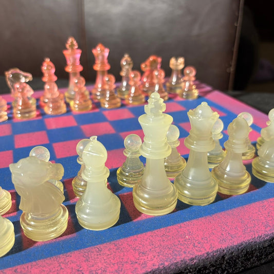 Check out our unique hand made chess sets, painted in variety of colors. Theses chess boards and chess pieces are all single stock and one of ones. All of these chess boards have been hand painted.