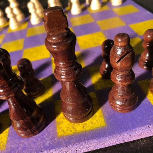 Check out our unique hand made chess sets, painted in variety of colors. Theses chess boards and chess pieces are all single stock and one of ones. All of these chess boards have been hand painted.