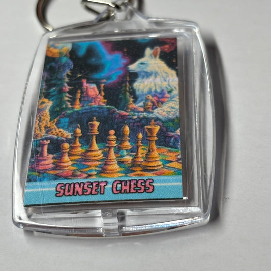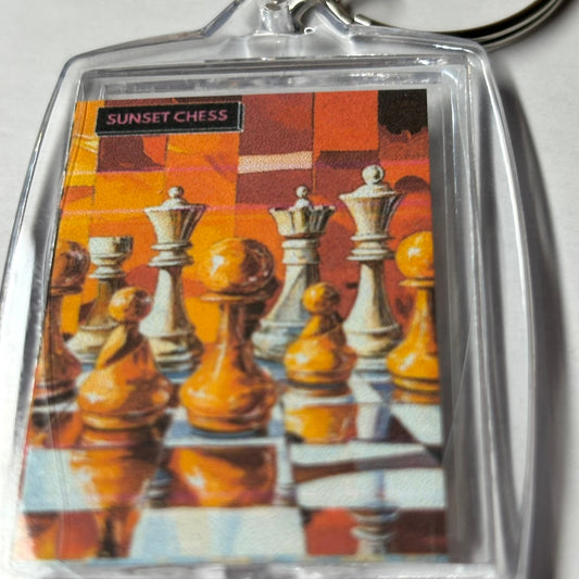 Lost In The Art Of Wood - Sunset Chess Photo Keychain