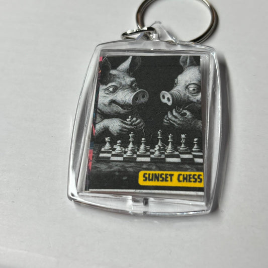 Pigs Play Chess - Sunset Chess Photo Keychain