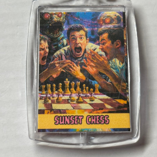 A vintage style image encased in durable acrylic, this keychain is not only stylish but also a great conversation starter. Perfect for chess enthusiasts and collectors alike. Join the hunt to collect over 2000 designs!