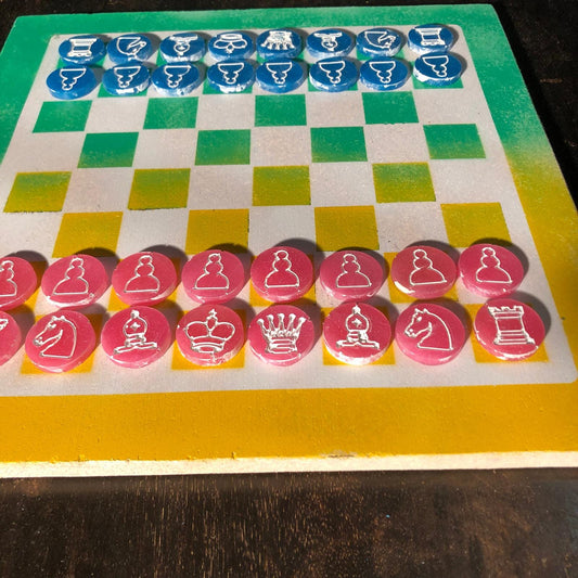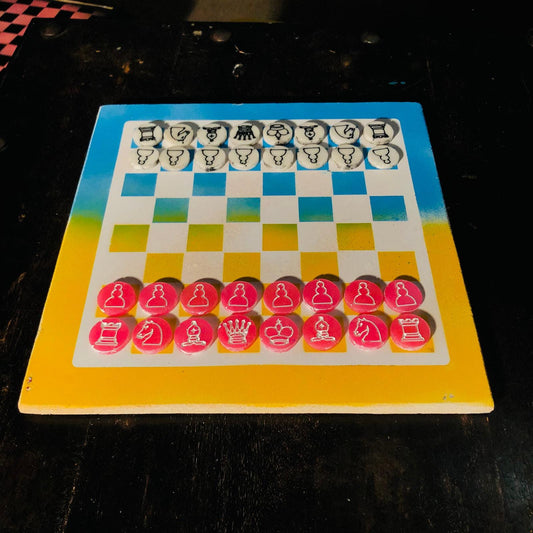Chess Set - Pink Yellow & Blue Sunset Edition