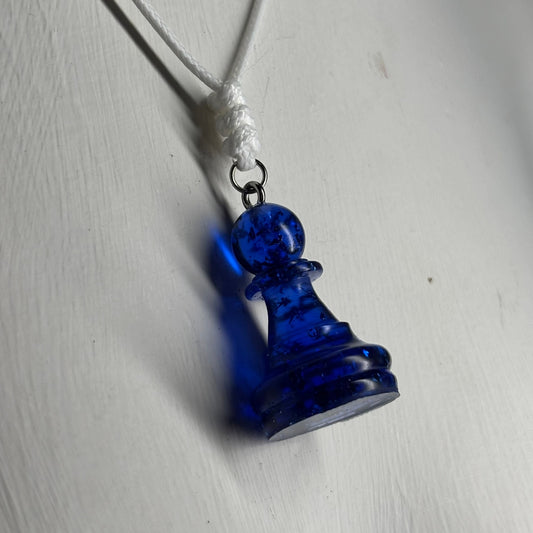Deep Blue Pawn - Handmade Resin Chess Necklace