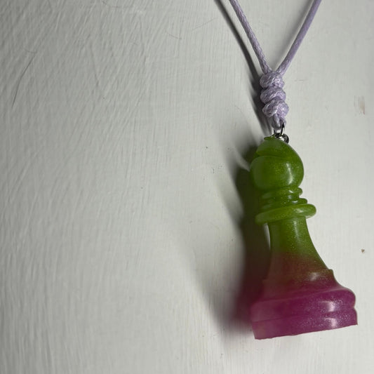 Green & Pink Bishop - Handmade Resin Chess Necklace