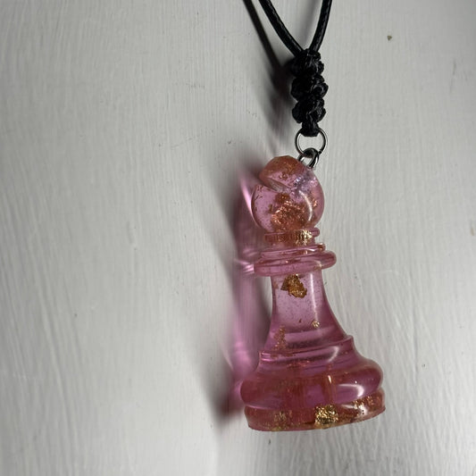 Pretty Pink Bishop - Handmade Resin Chess Necklace
