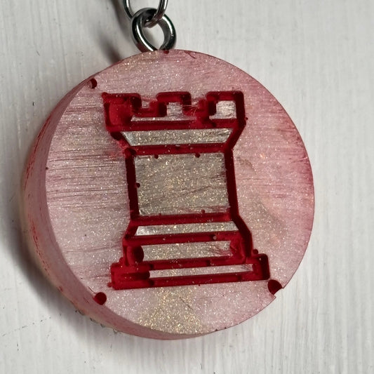 Crystal Red Rook - Handmade Resin Chess Necklace